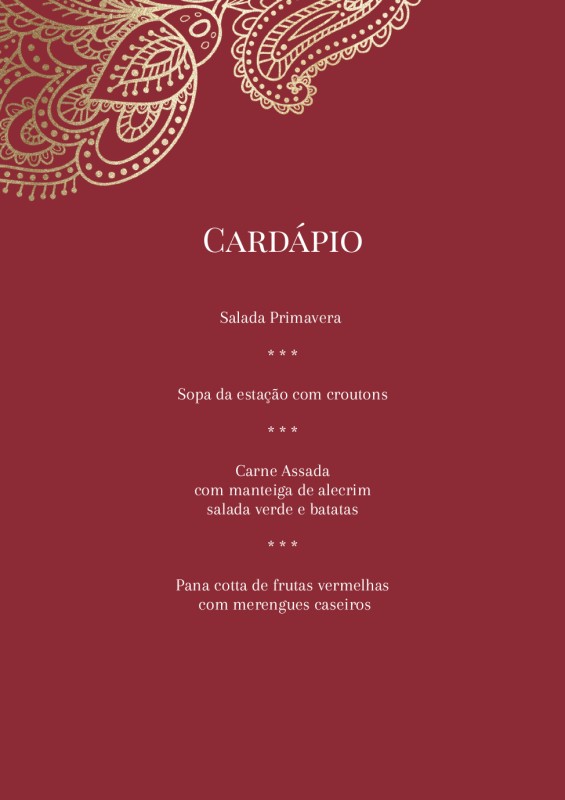 Cartões de Menu para casamentos e festas