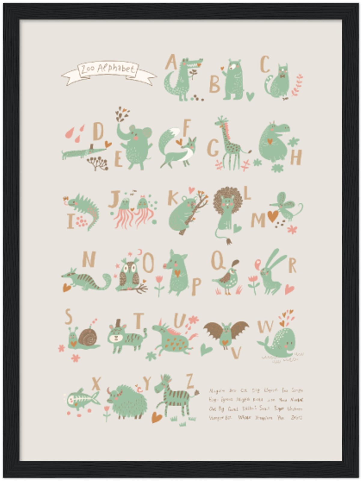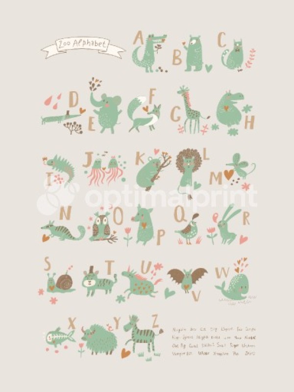 alfabeto, bonitinho, verde, cinza, crianças, cartas, educational, art-print-animal-illustrations, art-print-baby, art-prints/animals