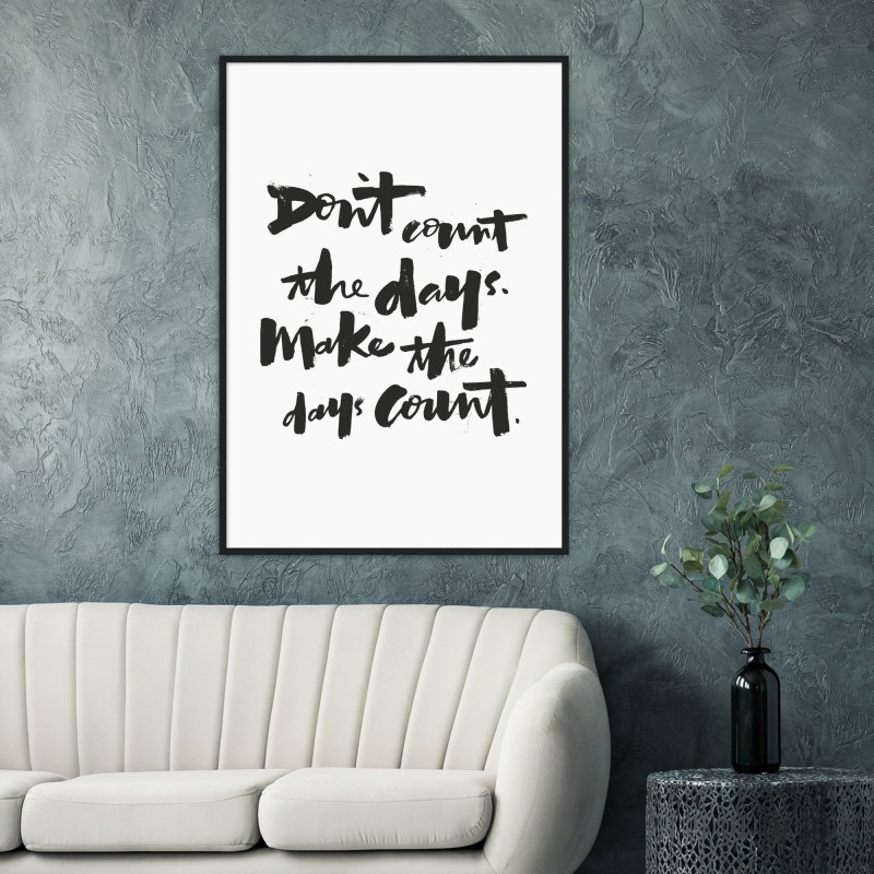 Faça os dias contar - Kickstart sua jornada para a grandeza com a nossa inspiração faça os dias contar impressos artísticos. Simples, mas poderoso, é perfeito para qualquer sala da casa. Impresso em papel de qualidade de museu, este pôster premium tem um acabamento fosco que trará à tona sua beleza minimalista. Criada pelo artista colaborador Matthew Taylor Wilson, este pôster de texto da tipografia minimalista serve como um lembrete para aproveitar ao máximo cada dia. Entregue com um processo de envio rápido e cuidadoso, ele estará pronto para a parede em pouco tempo.. Os designs do Studio Selection foram escolhidos de maneira criteriosa em colaboração com os maiores especialistas visuais de todo o mundo e são criações de artistas e fotógrafos independentes. Os posters são impressos em um papel matte de 200g/m2, com uma superfície sem brilho para oferecer um acabamento premium.